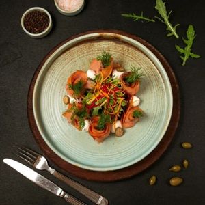 فيليه لحم بقري 130 غرام، جرجير، طماطم كرزية، طماطم مجففة، جبنة بارميجيانو.